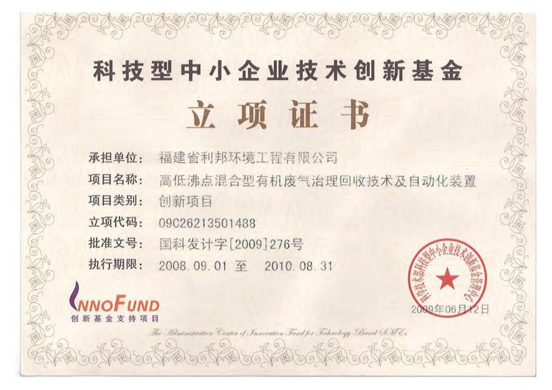 福建省科技型企業(yè)、福建省創(chuàng)新性企業(yè)、福建省首批科技小巨人、福建省“專精特新”專業(yè)化企業(yè),擁有企業(yè)研發(fā)中心、福建省有機廢氣凈化設備工程技術(shù)研發(fā)中心;公司產(chǎn)品獲得科技部、環(huán)保部、商務部、國家質(zhì)量監(jiān)督總局頒發(fā)的“國家重點新產(chǎn)品”證書,“中低濃度揮發(fā)性有機物回收凈化裝備”被列入《國家鼓勵發(fā)展的重大環(huán)保技術(shù)裝備目錄(2017年版)》;公司核心發(fā)明專利分別獲得了中國專利獎優(yōu)秀獎、福建省專利獎二等獎等專利獎項,其中兩個核心技術(shù)分別獲得福建省技術(shù)發(fā)明獎二等獎、福建省科學技術(shù)進步獎二等獎;公司